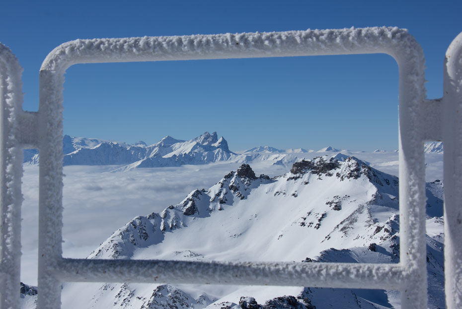 Rosaël has a different feel to the rest of Val Thorens, and a different view, looking towards the Maurienne valley and resorts further south including Les Deux Alpes.