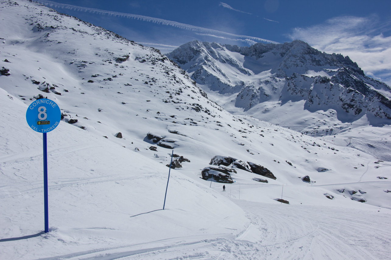 The main way over is from the top of the Grand Fond lift and the Col de Rosaël. The other access points are Funitel de Thorens/Col de Thorens and Cime de Caron