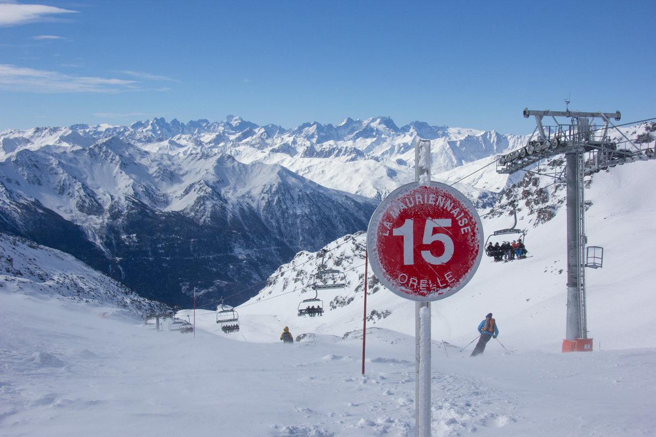 Mont de la Chambre runs parallel to Pluviomètre. It isn't shown on the Val Thorens - Orelle piste map because it is technically part of the Les Menuires ski area, but you can ski it and get back to Val Thorens as long as you take a left turn at the crucial moment on the Traversée Montaulever.